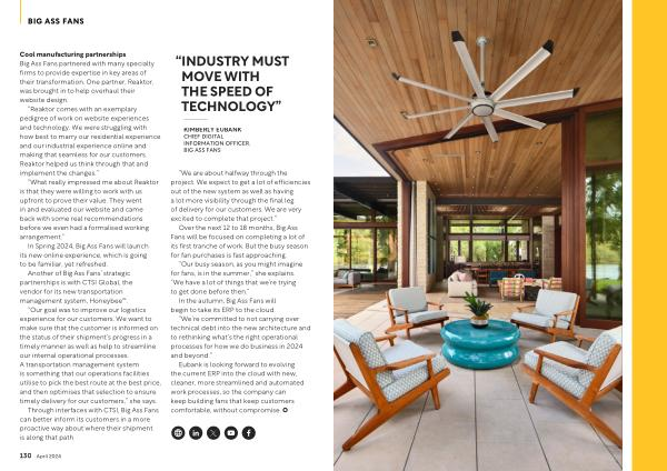 Eubank is looking forward to evolving the current ERP into the cloud with new , cleaner , more streamlined and automated work processes , so the company can keep building fans that keep customers comfortable , without compromise . 130 April 2024