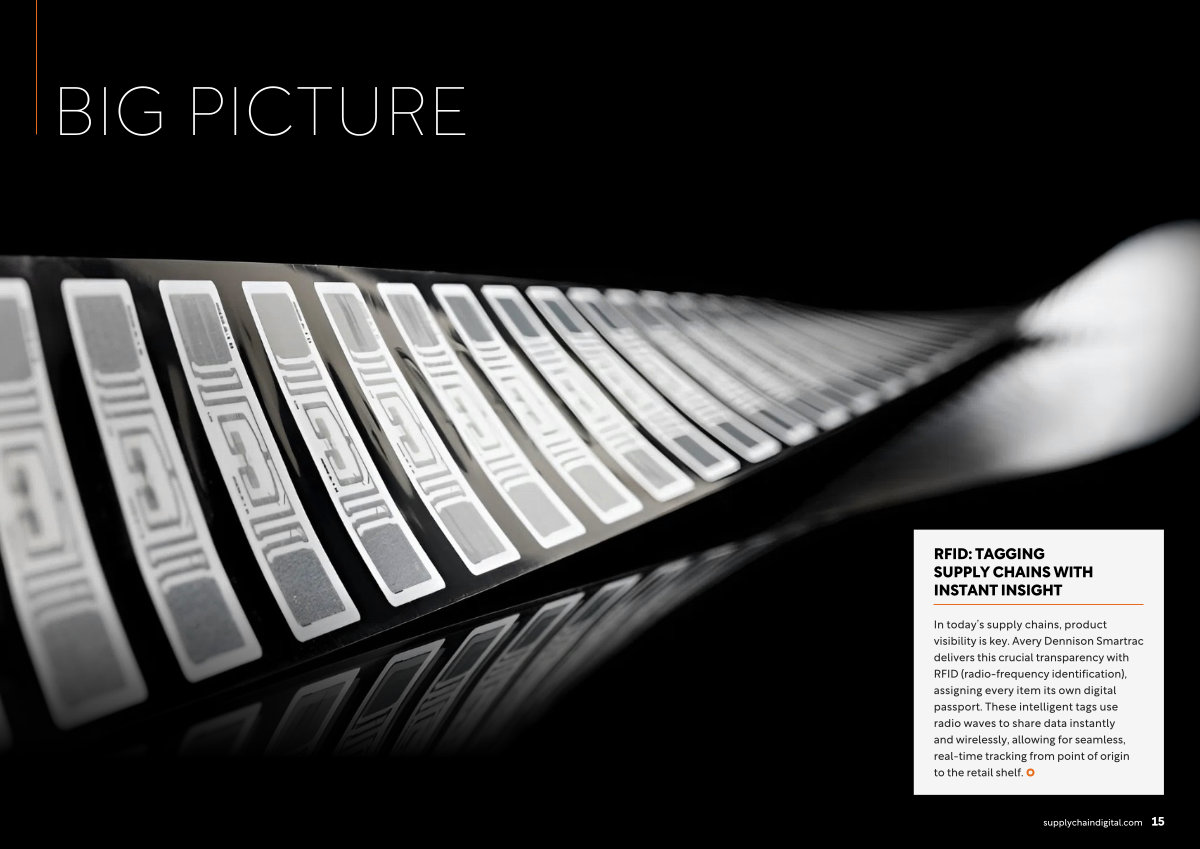 In today’ s supply chains, product visibility is key. Avery Dennison Smartrac delivers this crucial transparency with RFID( radio-frequency identification), assigning every item its own digital passport. These intelligent tags use radio waves to share data instantly and wirelessly, allowing for seamless, real-time tracking from point of origin to the retail shelf. supplychaindigital. com 15
