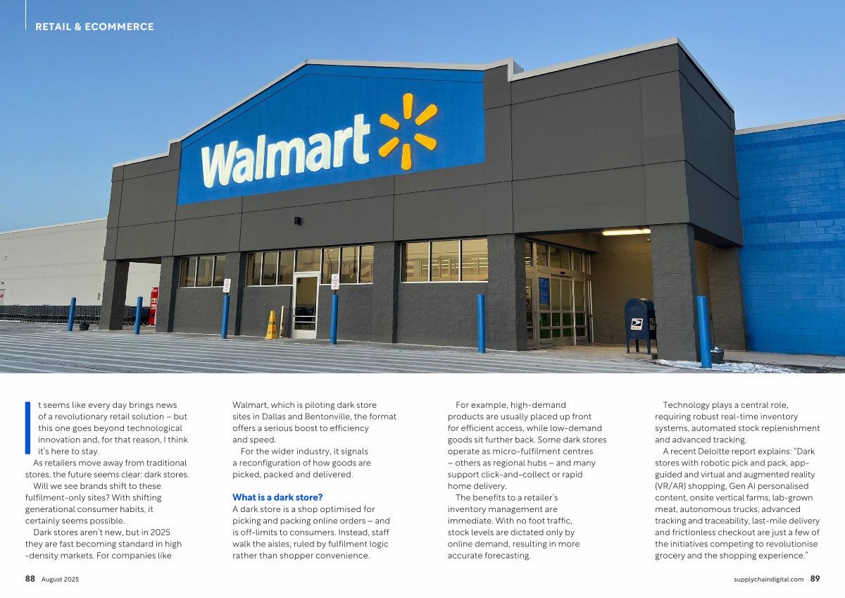 Walmart, which is piloting dark store sites in Dallas and Bentonville, the format offers a serious boost to efficiency and speed.