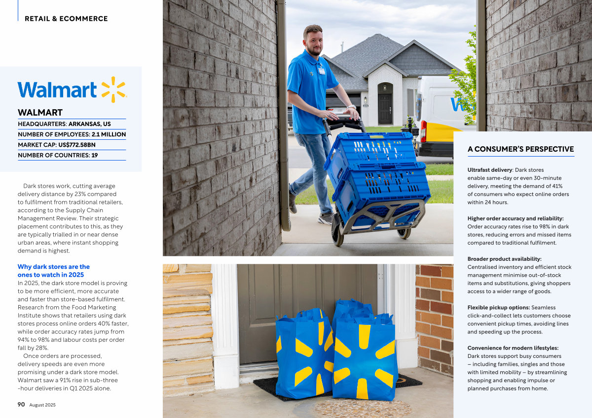 Once orders are processed, delivery speeds are even more promising under a dark store model. Walmart saw a 91 % rise in sub-three-hour deliveries in Q1 2025 alone.