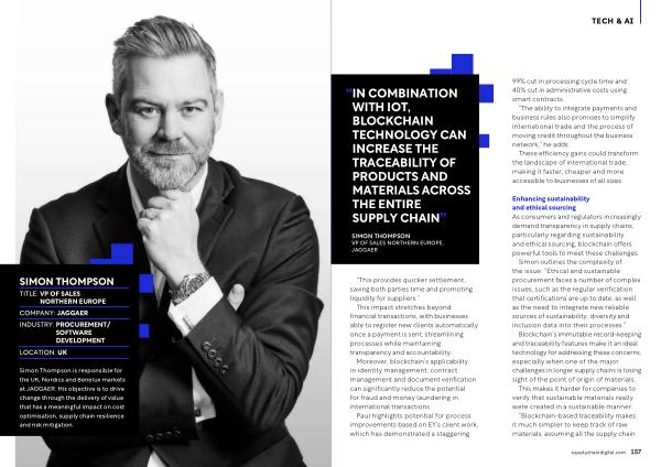 “IN COMBINATION WITH IOT , BLOCKCHAIN TECHNOLOGY CAN INCREASE THE TRACEABILITY OF PRODUCTS AND MATERIALS ACROSS THE ENTIRE SUPPLY CHAIN ”