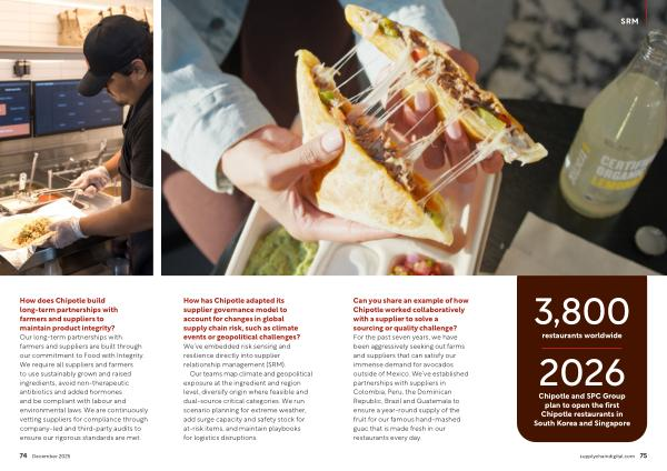 How has Chipotle adapted its supplier governance model to account for changes in global supply chain risk, such as climate events or geopolitical challenges? We’ ve embedded risk sensing and resilience directly into supplier relationship management( SRM).