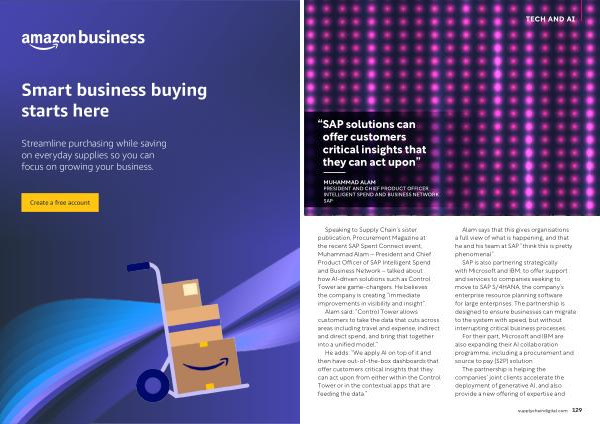 Speaking to Supply Chain ’ s sister publication , Procurement Magazine at the recent SAP Spent Connect event , Muhammad Alam – President and Chief Product Officer of SAP Intelligent Spend and Business Network – talked about how AI-driven solutions such as Control Tower are game-changers . He believes the company is creating “ immediate improvements in visibility and insight ”.