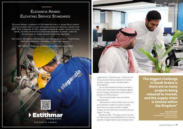 RED SEA GLOBAL organisation ,” Edwards says . “ There are so many projects being released to market , and the supply chain is limited within the Kingdom .