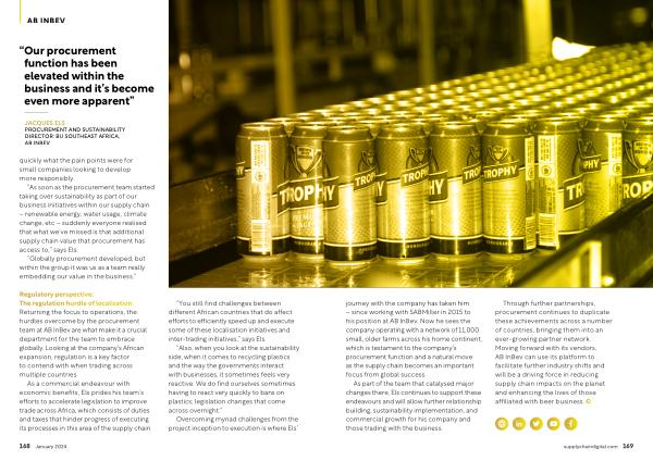 journey with the company has taken him – since working with SABMiller in 2015 to his position at AB InBev . Now he sees the company operating with a network of 11,000 small , older farms across his home continent , which is testament to the company ’ s procurement function and a natural move as the supply chain becomes an important focus from global success .