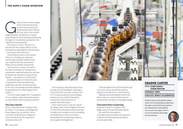 Graeme Carter wants supply chain to be perceived as a board-level priority. As Chief Supply Chain Officer at Coty, one of the world’ s largest beauty companies, he leads everything from forecasting and planning through to manufacturing, logistics and operational sustainability.