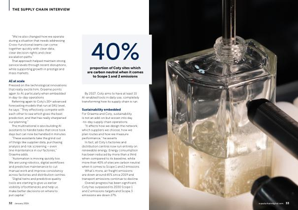 Sustainability embedded For Graeme and Coty, sustainability is not an add-on but woven into day-to-day supply chain operations.