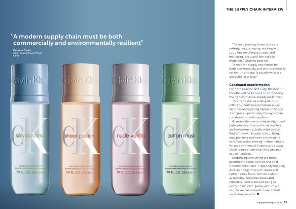 Underlying everything are three priorities: people, service and cost. Graeme concludes:“ Capability building and spending time with teams will remain a key focus. Service is about availability, responsiveness and reliability. Cost is about freeing up every dollar, cent, penny or euro we can, so we can reinvest in our brands and future growth.” supplychaindigital. com 35