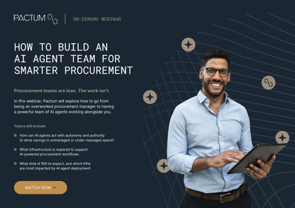 In this webinar, Pactum will explore how to go from being an overworked procurement manager to having a powerful team of AI agents working alongside you.