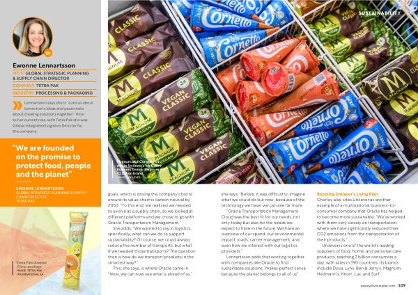 Boosting Unilever ’ s Living Plan Chorley also cites Unilever as another example of a multinational business-toconsumer company that Oracle has helped to become more sustainable : “ We ’ ve worked with them very closely on transportation , where we have significantly reduced their CO2 emissions from the transportation of their products .”