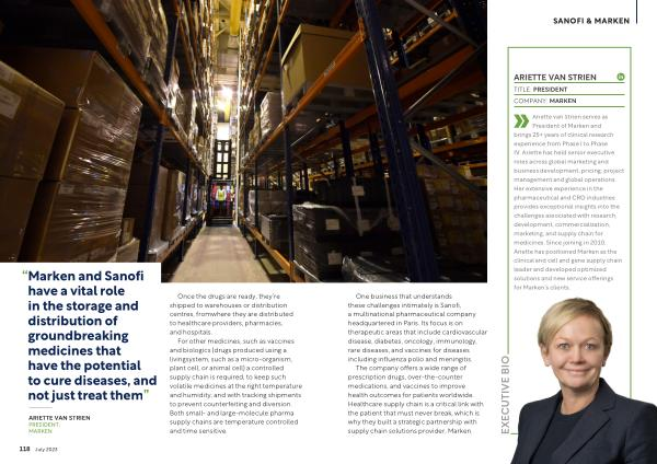 President of Marken and brings 25 + years of clinical research experience from Phase I to Phase IV . Ariette has held senior executive roles across global marketing and business development , pricing , project management and global operations . Her extensive experience in the pharmaceutical and CRO industries provides exceptional insights into the challenges associated with research , development , commercialization , marketing , and supply chain for medicines . Since joining in 2010 , Ariette has positioned Marken as the clinical and cell and gene supply chain leader and developed optimized solutions and new service offerings for Marken ’ s clients .