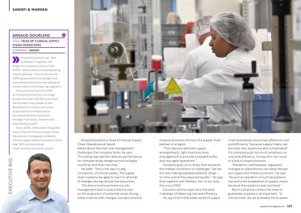 Arnaud Dourlens is Head of Clinical Supply Chain Operations at Sanofi . Asked about the main risk management challenges the company faces , he says : “ Providing near-perfect delivery performance for complex study designs across multiple countries and their trial sites .”