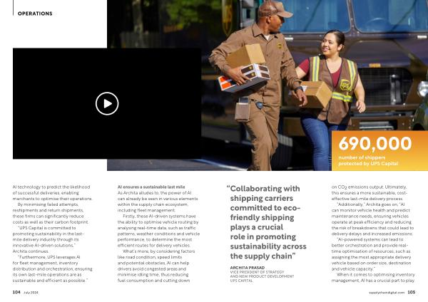 “ UPS Capital is committed to promoting sustainability in the lastmile delivery industry through its innovative AI-driven solutions ,” Archita continues .