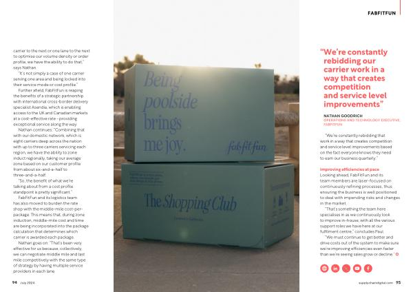 FabFitFun and its logistics team has also moved to burden the rate shop with the middle-mile cost-perpackage . This means that , during zone induction , middle-mile cost and time are being incorporated into the package calculation that determines which carrier is awarded each package .