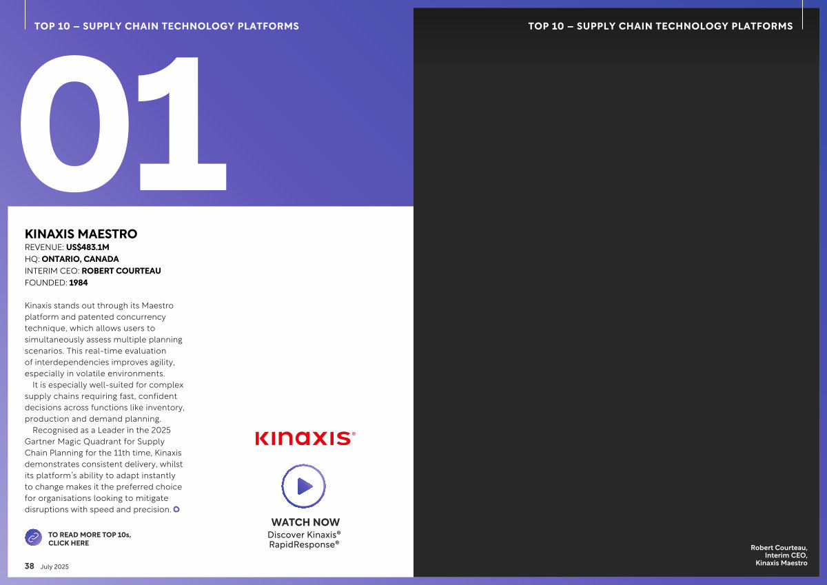 Recognised as a Leader in the 2025 Gartner Magic Quadrant for Supply Chain Planning for the 11th time, Kinaxis demonstrates consistent delivery, whilst its platform’ s ability to adapt instantly to change makes it the preferred choice for organisations looking to mitigate disruptions with speed and precision.