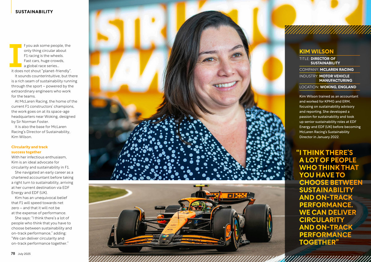 It is also the base for McLaren Racing’ s Director of Sustainability, Kim Wilson.