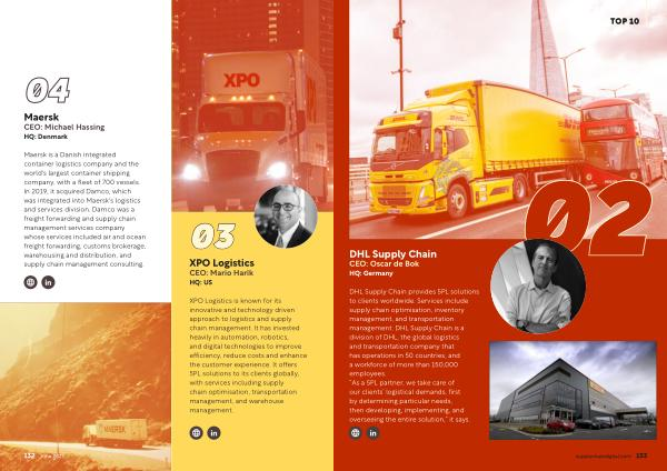 HQ : US XPO Logistics is known for its innovative and technology driven approach to logistics and supply chain management . It has invested heavily in automation , robotics , and digital technologies to improve efficiency , reduce costs and enhance the customer experience . It offers 5PL solutions to its clients globally , with services including supply chain optimisation , transportation management , and warehouse management . 132 June 2023