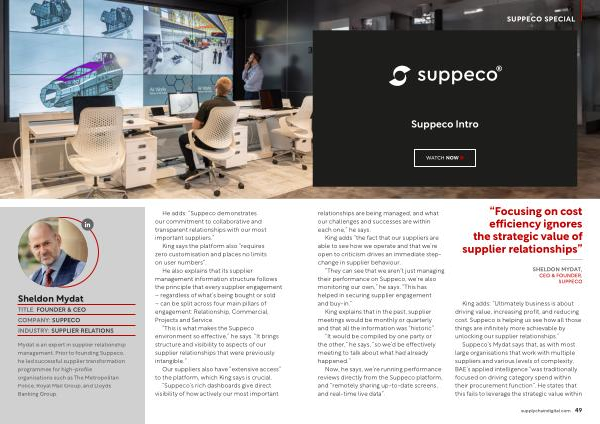 King adds : “ Ultimately business is about driving value , increasing profit , and reducing cost . Suppeco is helping us see how all those things are infinitely more achievable by unlocking our supplier relationships .”