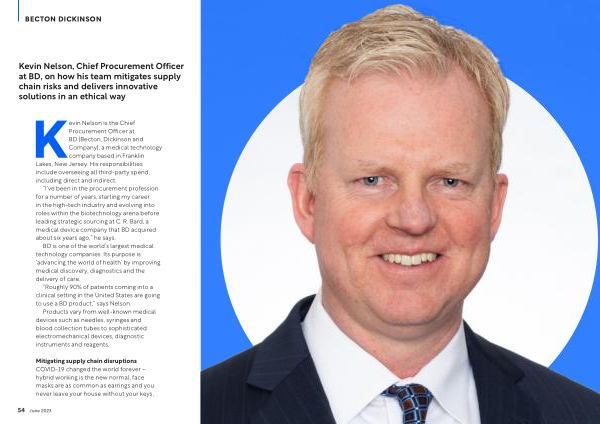 Kevin Nelson , Chief Procurement Officer at BD , on how his team mitigates supply chain risks and delivers innovative solutions in an ethical way