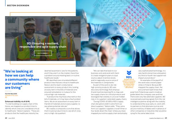 “ During COVID-19 , 80 % of BD ’ s supply chain disruptions didn ’ t come from our direct suppliers ,” Nelson adds . “ They came from our suppliers ’ suppliers or even three or four levels down the chain . Unless you have mapped your entire supply chain and employ