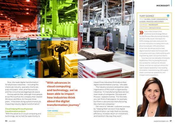 Her role is to “ elevate ” customer journeys by “ helping them envision how digital transformation can help them accelerate efficiency , increase return on investment , and transform the way they work ”. supplychaindigital . com 87