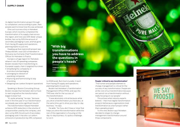 Europe is a huge region for Heineken , where it runs 25 operating companies . Boidon reveals that in transforming its European supply chain it targeted four areas :