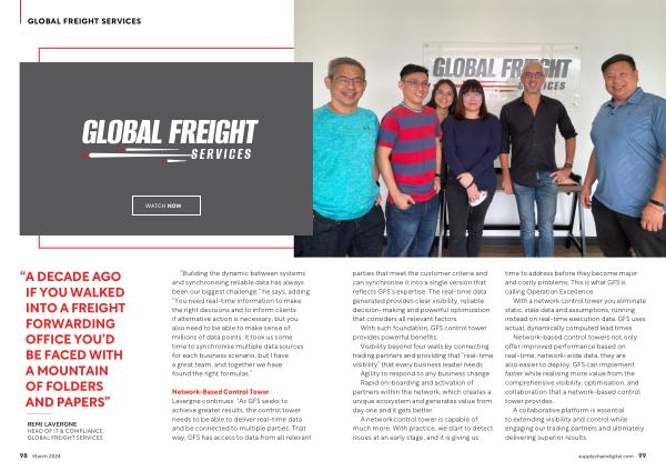 Network-Based Control Tower Lavergne continues : “ As GFS seeks to achieve greater results , the control tower needs to be able to deliver real-time data and be connected to multiple parties . That way , GFS has access to data from all relevant