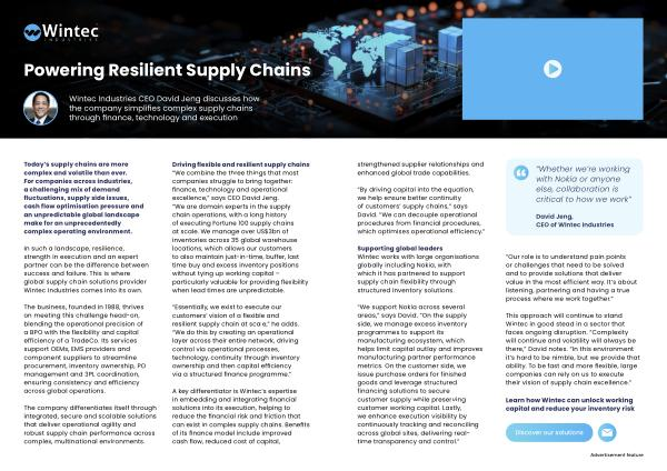 In such a landscape, resilience, strength in execution and an expert partner can be the difference between success and failure. This is where global supply chain solutions provider Wintec Industries comes into its own.