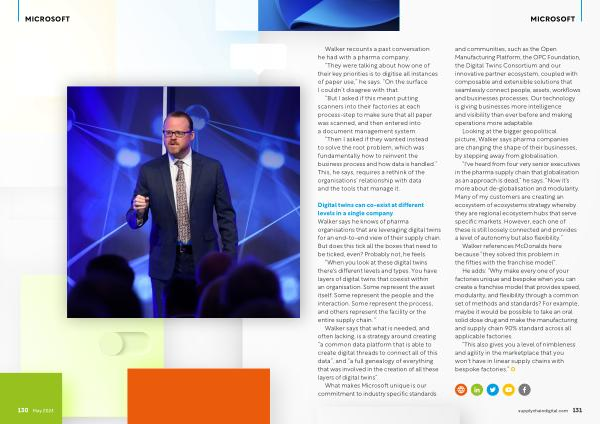 Digital twins can co-exist at different levels in a single company Walker says he knows of pharma organisations that are leveraging digital twins for an end-to-end view of their supply chain . But does this tick all the boxes that need to be ticked , even ? Probably not , he feels .