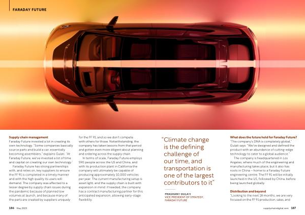 Supply chain management Faraday Future invested a lot in creating its own technology . “ Some companies basically source parts and build a car , essentially becoming assemblers ,” explains Gulati . “ At Faraday Future , we ' ve invested a lot of time and capital on creating our own technology .”