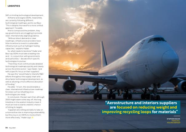 “ Aerostructure and interiors suppliers n are focused on reducing weight and n improving recycling loops for materials ” n