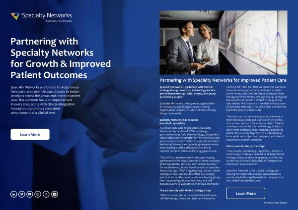 Specialty Networks and United Urology Group have partnered over the past decade to better practices across the group and improve patient care . The common focus on improvement in every area , along with clinical integration throughout , promotes consistent advancement at a clinical level .