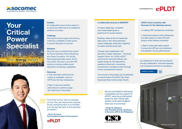 Through close collaboration with Socomec ’ s master distributor – Computer Support Centre , Inc . ( CSCI ), ePLDT and Socomec secured sufficient and reliable energy for the datacenter ’ s operations . Socomec ’ s unwavering commitment to excellence shone through in their comprehensive solution . ePLDT chose to partner with Socomec for the following reasons :