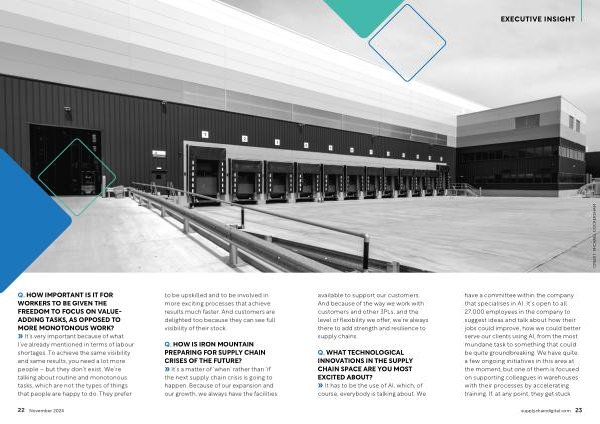 » It has to be the use of AI , which , of course , everybody is talking about . We have a committee within the company that specialises in AI . It ’ s open to all 27,000 employees in the company to suggest ideas and talk about how their jobs could improve , how we could better serve our clients using AI , from the most mundane task to something that could be quite groundbreaking . We have quite a few ongoing initiatives in this area at the moment , but one of them is focused on supporting colleagues in warehouses with their processes by accelerating training . If , at any point , they get stuck