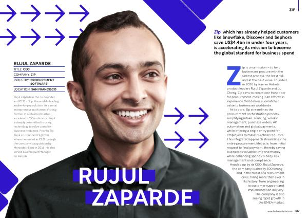 Rujul Zaparde is the co-founder and CEO of Zip , the world ’ s leading intake-to-pay solution . As a serial entrepreneur and former Visiting Partner at acclaimed startup accelerator Y Combinator , Rujul is deeply committed to using technology to solve complex business problems . Prior to Zip , Rujul co-founded FlightCar , where he served as CEO through the company ’ s acquisition by Mercedes-Benz in 2016 . He also served as a Product Manager for Airbnb .