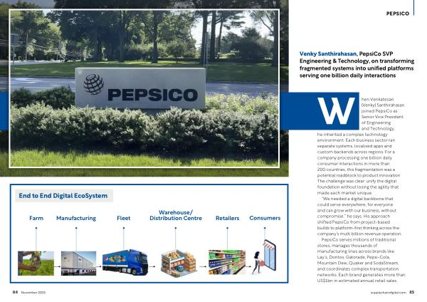W hen Venkatesan( Venky) Santhirahasan joined PepsiCo as Senior Vice President of Engineering and Technology, he inherited a complex technology environment. Each business sector ran separate systems, localised apps and custom backends across regions. For a company processing one billion daily consumer interactions in more than 200 countries, this fragmentation was a potential roadblock to product innovation. The challenge was clear: unify the digital foundation without losing the agility that made each market unique.