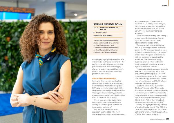 Data-driven sustainability Adding to this momentum, Sophia Mendelsohn, Chief Sustainability and Commercial Officer at SAP, explains SAP’ s goal to reach net zero by 2030 is deeply tied to stakeholder expectations:“ Really good sustainability goals are always based on what your stakeholders want to see from the business.