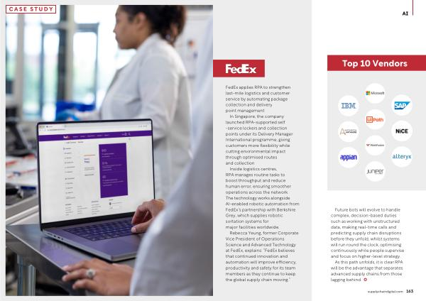 As this path unfolds, it is clear RPA will be the advantage that separates advanced supply chains from those lagging behind. supplychaindigital. com 163