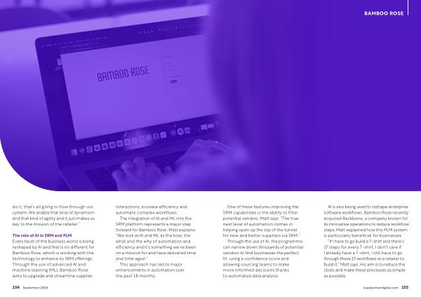 “ If I have to go build a T-shirt and there ’ s 17 steps for every T-shirt , I don ’ t care if I already have a T-shirt , I still have to go through these 17 workflows as a retailer to build it ,” Matt says . His aim is to reduce the clicks and make these processes as simple as possible . supplychaindigital . com 155