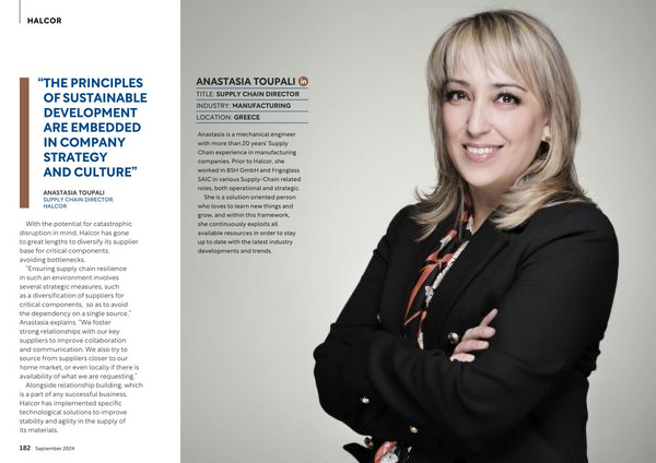 “THE PRINCIPLES OF SUSTAINABLE DEVELOPMENT ARE EMBEDDED IN COMPANY STRATEGY AND CULTURE ” ANASTASIA TOUPALI SUPPLY CHAIN DIRECTOR , HALCOR