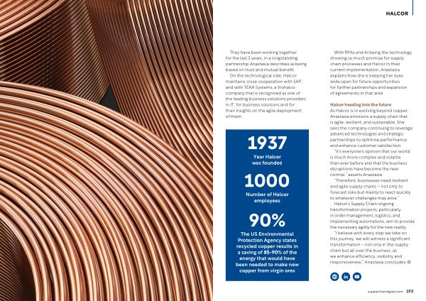 “ Therefore , businesses need resilient and agile supply chains – not only to forecast risks but mainly to react quickly to whatever challenges may arise .” Halcor ’ s Supply Chain ongoing transformation projects , particularly in order management , logistics , and implementing automations , aim to provide the necessary agility for the new reality .