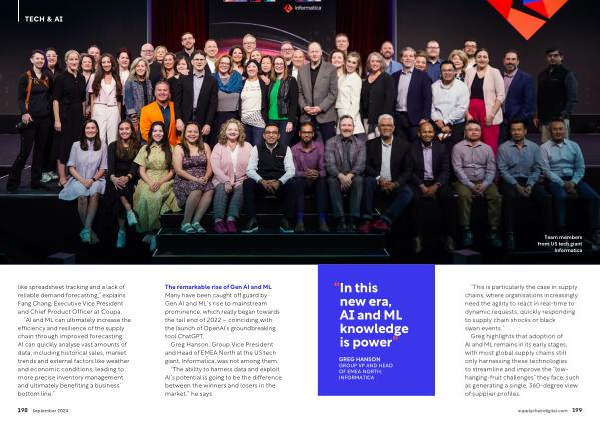Greg highlights that adoption of AI and ML remains in its early stages , with most global supply chains still only harnessing these technologies to streamline and improve the “ lowhanging-fruit challenges ” they face , such as generating a single , 360-degree view of supplier profiles .