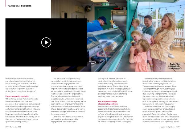 From complexity to clarity When Amey joined Parkdean Resorts, she encountered procurement processes that were more complicated than necessary. Her approach focused on fundamental simplification:“ It’ s very easy to overcomplicate simple tasks. So we’ ve gone back to performing the basics well, whether that’ s having clean data sets or having consistency in our approach where possible.”