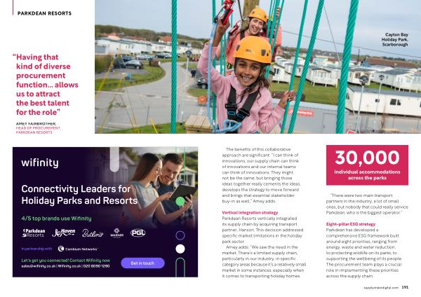 Eight-pillar ESG strategy Parkdean has developed a comprehensive ESG framework built around eight priorities, ranging from energy, waste and water reduction, to protecting wildlife on its parks, to supporting the wellbeing of its people. The procurement team plays a crucial role in implementing these priorities across the supply chain.