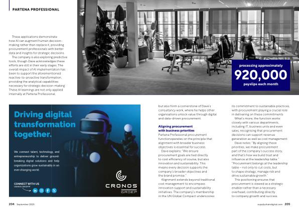 Dave notes:“ By aligning those priorities, we make procurement part of the company’ s success story, and that’ s how we build trust and influence at the leadership table.”“ Procurement belongs at the leadership table – not only to cut costs, but to shape strategy, manage risk and drive sustainable growth.”
