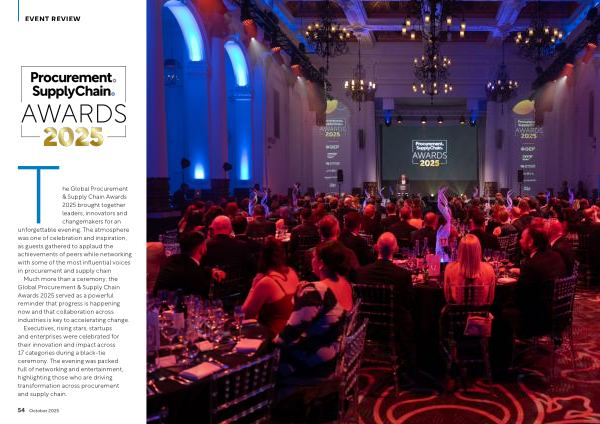 he Global Procurement & Supply Chain Awards 2025 brought together leaders, innovators and changemakers for an unforgettable evening. The atmosphere was one of celebration and inspiration, as guests gathered to applaud the achievements of peers while networking with some of the most influential voices in procurement and supply chain.