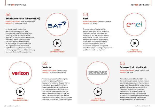 Verizon oversees one of the highestperforming supply chains in telecommunications – largely thanks to its OnePlanning platform. With integrated AI and machine learning for real-time inventory visibility, the tool enables inventory optimisation, enhanced supplier collaboration and rapid scenario planning. This level of automation and data accuracy improves customer service and operational agility.
