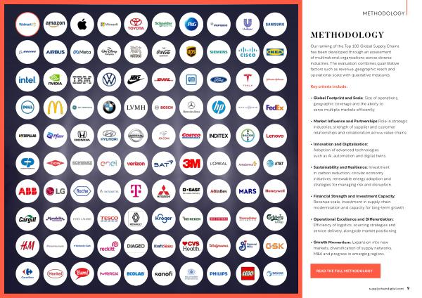 Our ranking of the Top 100 Global Supply Chains has been developed through an assessment of multinational organisations across diverse industries. The evaluation combines quantitative factors such as revenue, geographic reach and operational scale with qualitative measures.