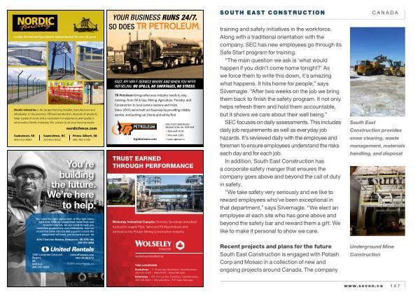 Recent projects and plans for the future South East Construction is engaged with Potash Corp and Mosaic in a collection of new and ongoing projects around Canada . The company