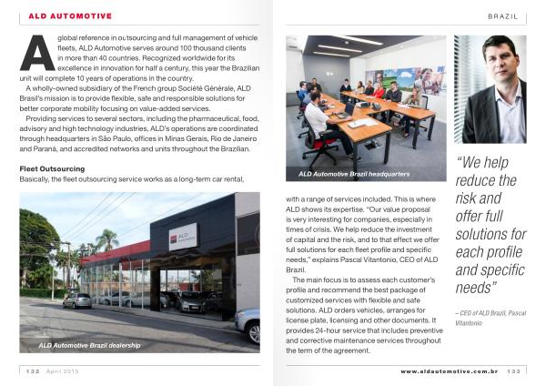 Aglobal reference in outsourcing and full management of vehicle fleets , ALD Automotive serves around 100 thousand clients in more than 40 countries . Recognized worldwide for its excellence in innovation for half a century , this year the Brazilian unit will complete 10 years of operations in the country .
